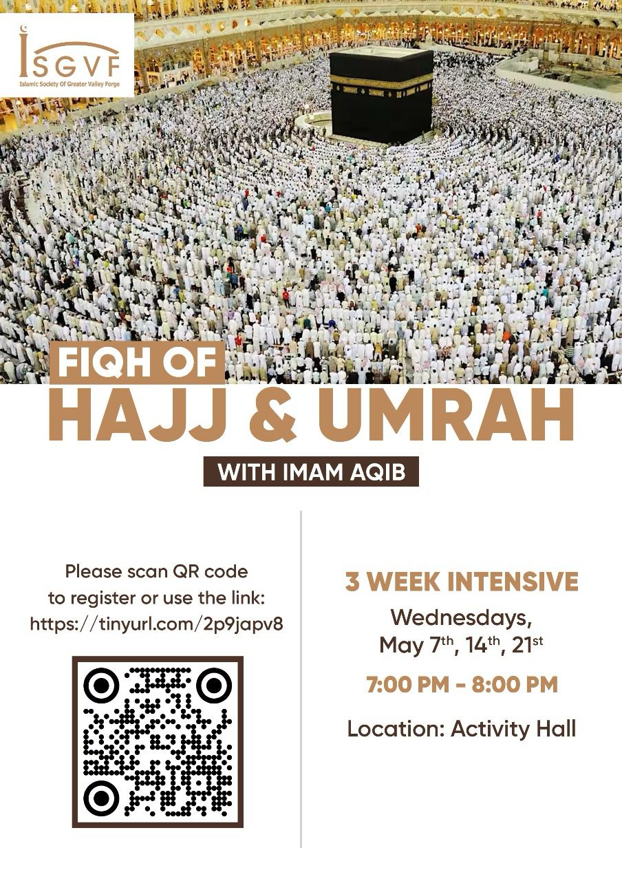 Fiqah of Hajj & Umrah Click here for Registration + Add to Google Calendar + iCal / Outlook export Date May 21 2025 Expired! Time 7:00 PM - 8:00 PM Share this event