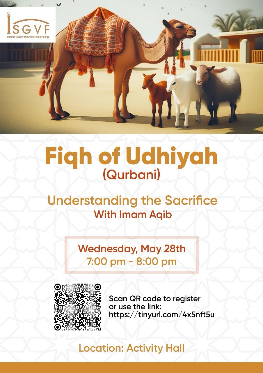 Fiqah of Udhiya (Qurbani) + Add to Google Calendar + iCal / Outlook export Date May 28 2025 Expired! Time 7:00 PM - 8:00 PM Share this event