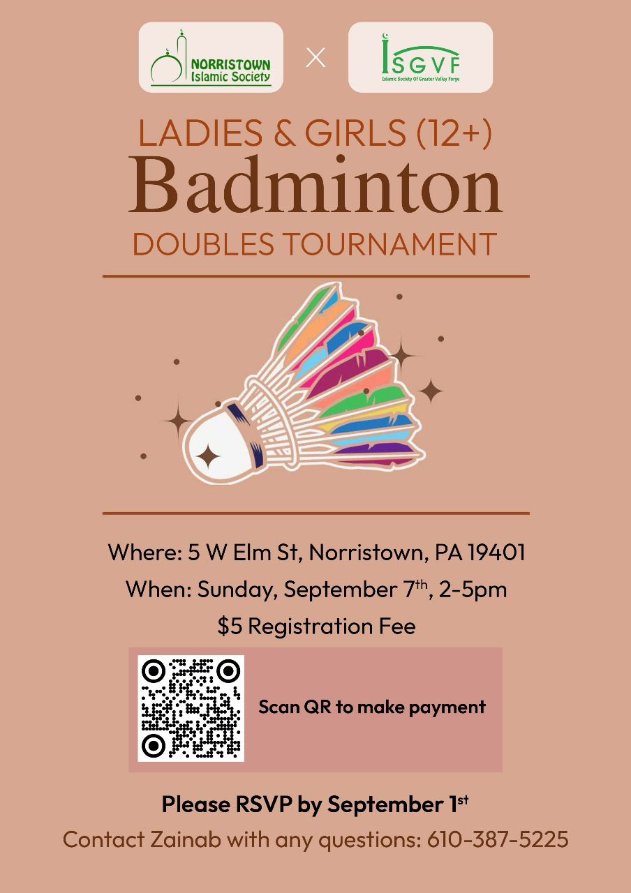 🏸 Join us for the Ladies & Girls (12+) Badminton Doubles Tournament!