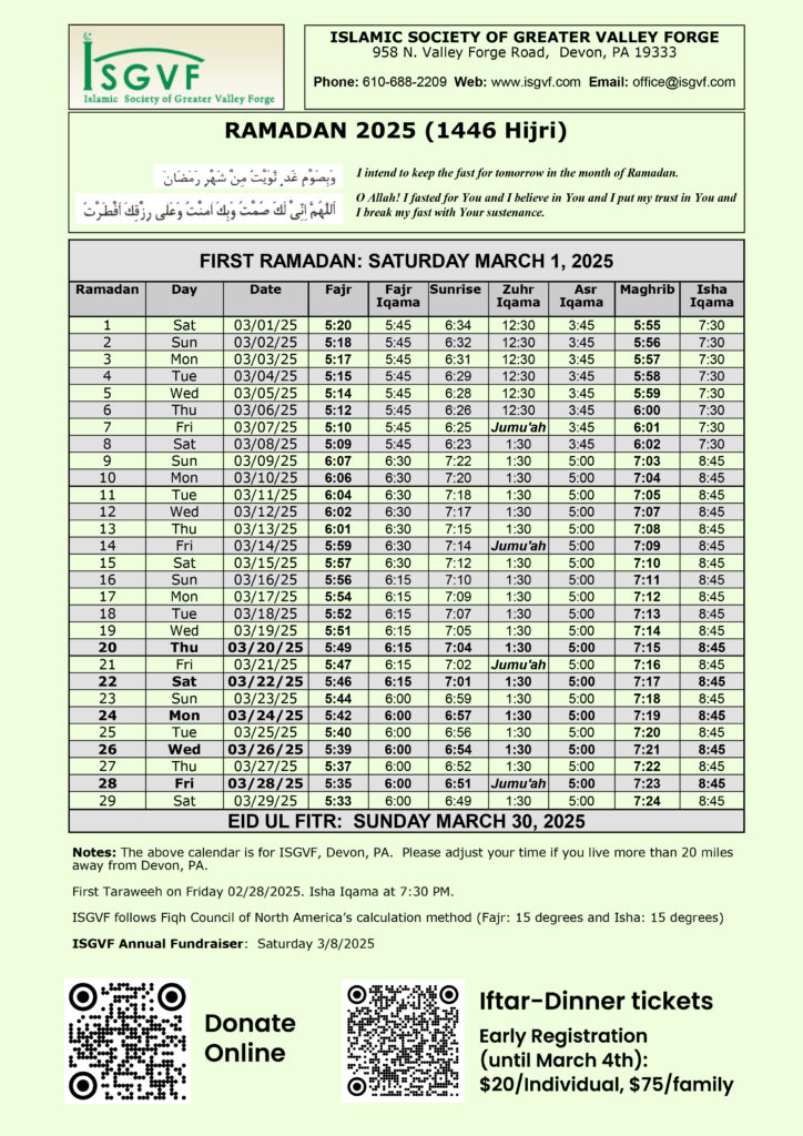 Itikaaf can be done at ISGVF in the last 10 nights of Ramadan. Contact office@isgvf.com if you’re interested.